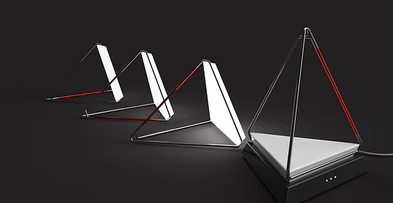 S’inspire du prisme par la forme et la fonction. Facilement transportable, à poser, suspendre ou utiliser comme torche.